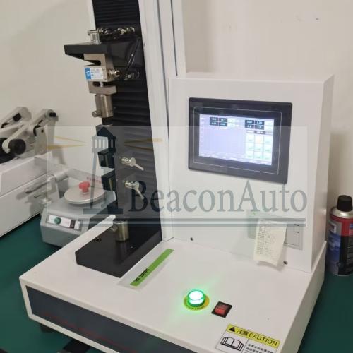 復(fù)合膜袋耐壓性能試驗機產(chǎn)品特點: 1、采用高精度、全數(shù)字調(diào)速系統(tǒng)及精密減速機, 驅(qū)動精密絲杠副進行試驗,實現(xiàn)試驗速度的大范圍調(diào)節(jié), 試驗過程噪音低、運行平穩(wěn)。 2、萬向節(jié)采用十字插銷結(jié)構(gòu),而且具有擺角限制功能, 一方面便于試樣夾持,保證試驗同心度, 另一方面很好的消除了不規(guī)則試樣對傳感器的影響。 3、觸摸鍵操作方式,液晶顯示器實時顯示。 顯示界面可顯示試驗方法選擇界面、試驗參數(shù)選擇界面、試驗操作及結(jié)果顯示界面和曲線顯示界面,方便快捷。 4、可實現(xiàn)試樣裝夾時橫梁快慢升降調(diào)整,具有過流、過壓、過載等保護裝置。 5、選配微機接口,可外接微機實現(xiàn)試驗過程的控制及數(shù)據(jù)的存儲、打印。 復(fù)合膜袋耐壓性能試驗機技術(shù)參數(shù): 主要技術(shù)指標 | 型號 | WDL系列液晶屏顯電子壓力試驗機 | 規(guī)格 | WDL系列 | 試驗力 | 200N | 300N | 500N | 1000N | 2000N | 結(jié)構(gòu)形式 | 單臂式 | 壓縮空間 | 600mm | 負荷測量范圍 | 最大負荷的2%-100。% | 負荷測量精度 | 優(yōu)于示值的±1% | 橫梁位移速度 | 0-500mm/min無級調(diào)速 | 速度精度 | ±1% | 外形尺寸(mm) | 530*266*1450 | 夾具配置 | 壓縮夾具一套(根據(jù)用戶試樣要求) | 電源 | 單相交流220V±10%V | 重量(kg) | 60kg |