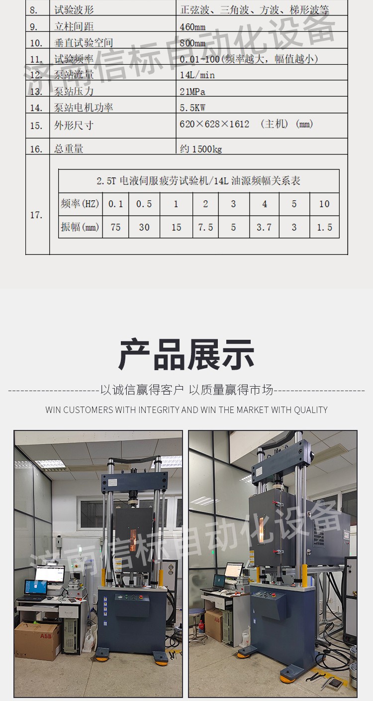 4.1 主機 主機為雙立柱加橫梁底座(立柱表面電鍍硬鉻)框架式結構,伺服直線作動器下置(或者上置)結構。主機作用是提供試樣連接接口,接受程序指令完成試樣的加載。其突出特點如下: 4.1.1主機為雙立柱框架式結構,橫梁采用液壓油缸控制升降、液壓缸控制夾緊式結構,使試驗調整、操控方便。特殊的液壓油路設計既可以保證試驗的穩固可靠,可以在非試驗狀態時橫梁保持鎖止不動。 4.1.2橫梁具有很高的剛度和強度。同時造型具有立體感,美觀大方。 4.1.3橫梁升降、鎖緊油缸的密封元件采用進口產品,品質可靠,結構獨特。 4.1.4立柱外表面采用電鍍硬鉻處理,進一步提高外形的美觀程度,同時提高防腐蝕能力。 4.1.5橫梁操控(升降、夾緊)驅動模塊采用高品質液壓元件集成,控制臺設置符合人機工程學原理設計設計的操作臺,便于試驗者操作。 4.1.6伺服直線作動器與工作臺剛性連接,內置非接觸式高頻響LVDT位移傳感器,外置國產航空品質伺服閥,7Mpa下流量為58L/min。負荷傳感器采用Vishay世銓試驗機專用傳感器。 4.1.7設計由精度不大于5u國產溫州黎明精密濾油器以及具有消脈、蓄能功能的進回油路蓄能器組成的中繼濾油穩壓模塊。 4.1.8單元化、標準化、模塊化設計的伺服直線作動器具有低阻尼、高響應、高壽命、大間隙設計的特點,設計理念與MTS公司等同。