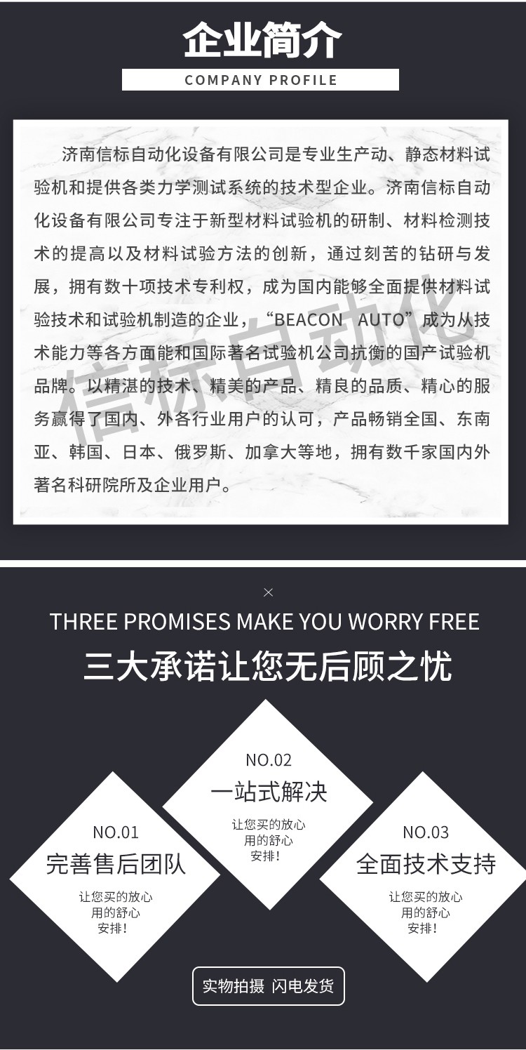 濟南信標自動化設備有限公司主要生產(chǎn):動靜態(tài)萬能疲勞試驗機,接骨板彎曲試驗機,縫合線拉伸疲勞試驗機,髖膝關(guān)節(jié)磨損試驗機,電子萬能試驗機、液壓萬能試驗機、巖石三軸、四軸,電液拉力試驗機,材料試驗機,高低溫蠕變,高低頻疲勞,拉伸、扭轉(zhuǎn)、杯突等二十多個系列兩千多個的品種。