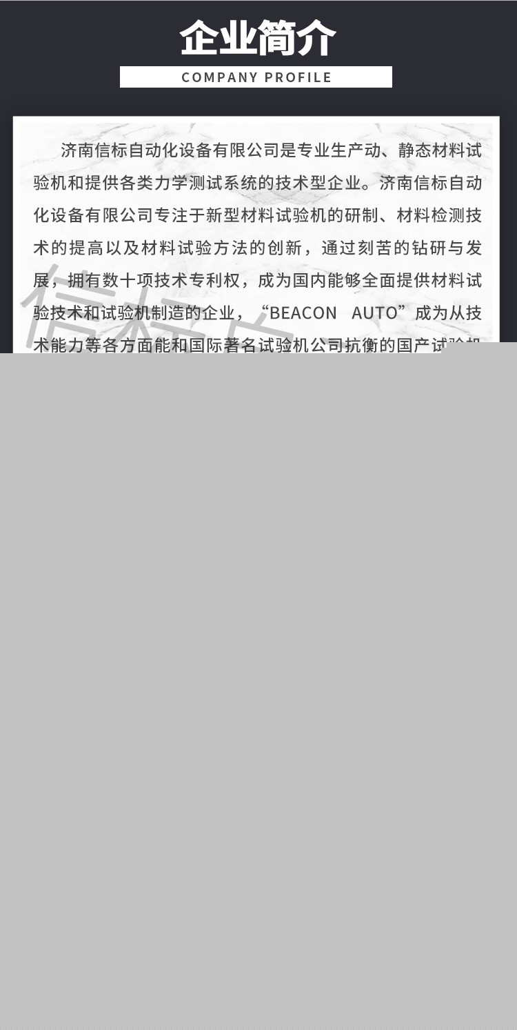 濟南信標自動化設備有限公司主要生產:動靜態萬能疲勞試驗機,接骨板彎曲試驗機,縫合線拉伸疲勞試驗機,髖膝關節磨損試驗機,電子萬能試驗機、液壓萬能試驗機、巖石三軸、四軸,電液拉力試驗機,材料試驗機,高低溫蠕變,高低頻疲勞,拉伸、扭轉、杯突等二十多個系列兩千多個的品種。