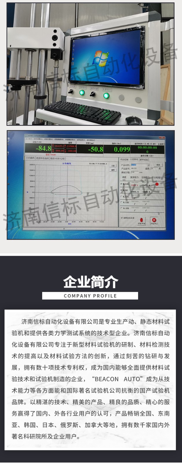 濟南信標自動化設備有限公司主要生產:動靜態(tài)萬能疲勞試驗機,接骨板彎曲試驗機,縫合線拉伸疲勞試驗機,髖膝關節(jié)磨損試驗機,電子萬能試驗機、液壓萬能試驗機、巖石三軸、四軸,電液拉力試驗機,材料試驗機,高低溫蠕變,高低頻疲勞,拉伸、扭轉、杯突等二十多個系列兩千多個的品種。