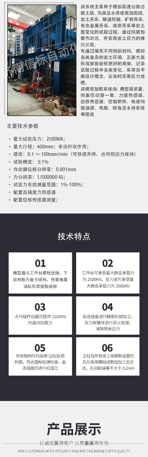 電液伺服靜音油源1、伺服泵站:伺服泵站是新型靜音油源,采用伺服電機帶動油泵提供動力,可根據(jù)不同加載力自動選擇電機轉(zhuǎn)速,提供恒定的持續(xù)的動力來源。該系列產(chǎn)品具有使用方便,壓力輸出穩(wěn)定,可靠性好、噪音低等特點。整體性能與國際先進產(chǎn)品技術(shù)水平相當。該系列泵站額定壓力可在0-40MPa內(nèi)無級調(diào)整,系統(tǒng)流量可根據(jù)試驗要求調(diào)整流量,最大程度節(jié)約能源。該系列泵站已泛應用于各種電液伺服加載試驗系統(tǒng)。 2、泵站由金屬框架外殼、油箱、油泵電機組、管路、電控系統(tǒng)、過濾系統(tǒng)等部分組成。 3、泵站油箱采用全封閉設(shè)計,防止外界雜質(zhì)進入液壓系統(tǒng)對液壓油的污染。 4、油泵、電機組配置采用串聯(lián)雙彈性支撐方式,配合減震機構(gòu),進一步減少泵站噪音。 5、采用多組油泵電機組并聯(lián),可根據(jù)試驗要求任意組合使用,節(jié)約能源。 6、系統(tǒng)壓力調(diào)整:采用PID自適應功能調(diào)定系統(tǒng)壓力,控制液壓系統(tǒng)溢流量以降低調(diào)壓誤差;為電液伺服試驗系統(tǒng)提供穩(wěn)定的系統(tǒng)壓力,壓力輸出精度±1%。 7、由主溢流閥、進回油路、安全閥和換向閥、精密濾油器組成的液壓模塊用于調(diào)整泵站輸出系統(tǒng)壓力及精密過濾,可有效防止液壓系統(tǒng)工作時產(chǎn)生的沖擊; 8、泵站配置吸油過濾器、精密過濾器、回油過濾器三道過濾保護,其中精密過濾器過濾精度為5μm,保護液壓油不受污染。 9、泵站配置溫控表,液位計、壓力傳感器等必要傳感器;具有油溫報警、液位報警、電機過載保護等多種安全報警功能。 10、標配高精度5μm高壓濾油器。 11、電機功率:1.5kW; 12、無需任何冷卻系統(tǒng),無需室外冷卻塔建設(shè),更加節(jié)能環(huán)保,無噪音污染;