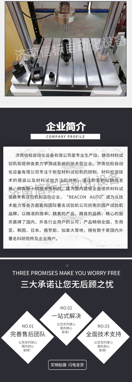濟(jì)南信標(biāo)自動化設(shè)備有限公司主要生產(chǎn):動靜態(tài)萬能疲勞試驗(yàn)機(jī),接骨板彎曲試驗(yàn)機(jī),縫合線拉伸疲勞試驗(yàn)機(jī),髖膝關(guān)節(jié)磨損試驗(yàn)機(jī),電子萬能試驗(yàn)機(jī)、液壓萬能試驗(yàn)機(jī)、巖石三軸、四軸,電液拉力試驗(yàn)機(jī),材料試驗(yàn)機(jī),高低溫蠕變,高低頻疲勞,拉伸、扭轉(zhuǎn)、杯突等二十多個(gè)系列兩千多個(gè)的品種。