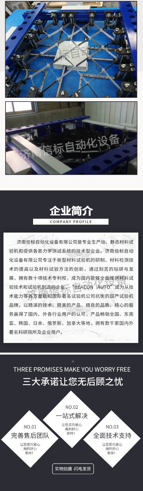 | 濟(jì)南信標(biāo)自動化設(shè)備有限公司主要生產(chǎn):動靜態(tài)萬能疲勞試驗(yàn)機(jī),接骨板彎曲試驗(yàn)機(jī),縫合線拉伸疲勞試驗(yàn)機(jī),髖膝關(guān)節(jié)磨損試驗(yàn)機(jī),電子萬能試驗(yàn)機(jī)、液壓萬能試驗(yàn)機(jī)、巖石三軸、四軸,電液拉力試驗(yàn)機(jī),材料試驗(yàn)機(jī),高低溫蠕變,高低頻疲勞,拉伸、扭轉(zhuǎn)、杯突等二十多個(gè)系列兩千多個(gè)的品種。 |