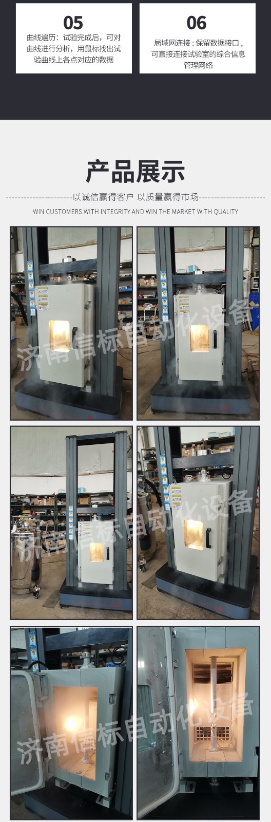 測量參數: 1. 最大試驗力: 10/20/30/50kN 2. 試驗力測量范圍: 0.4%--100%。 3. 試驗力示值精度:優于示值±1% 4. 試驗力分辨力:1/500000 5. 橫梁位移測量精度:分辨率高于0.0025mm 6. 變形測量精度: ±0.5% 7. 試驗速度范圍:0.0002—500mm/min,無級調速 8. 速度控制精度:±1%(0.0002~50mm/min); ±0.5%(50~3500mm/min) 9. 恒力、恒變形、恒位移控制范圍: 0.2%-100%FS 10.恒力、恒變形、恒位移控制精度: 設定值<10%FS時,設定值的±1.0%以內 設定值≥10%FS時,設定值的±0.1%以內 11. 變形速率控制精度: 速率<0.05%FS時為±2.0%設定值內 速率≥0.05%FS時為±0.5%設定值內 12. 試驗空間: A.拉伸空間:1000mm B.壓縮空間:1100mm C.寬度:450mm 13.下工作臺:450*250 14. 壓盤尺寸:φ100 mm 15. 整機電源:單相,220V±10%,50Hz,功率:750 W 16. 工作環境:室溫—35℃,相對濕度不超過80% 17. 主機尺寸: 870×730×1750mm 18. 重量:400kg 產品配置: 1、主機 一套 2、松下A7全數字伺服電機及伺服驅動器; 一套 3、高精度負荷傳感器; 5kn/1kn/500N/200/ 各一支 4、Hiwin精密滾珠絲杠; 2支 5、光電編碼器(2500線,內置); 1支 6、夾具:滿足海綿/汽車座椅所需工裝 1套(有多種) 7、三閉環測量系統一套,采用力,位移,應變等多種控制方式,試驗過程中可實時顯示力-位移,力-時間,應力-應變等多種試驗曲線,并可自動得出最大負荷,拉伸強度,斷裂伸長率等多種結果參數。 8、HP品牌計算機,21寸液晶顯示器; 9、打印機:HPA4彩色噴墨打印機; 10、專用試驗軟件:可執行GB,ISO,JIS、DIN,ASTM等多種試驗標準,全開放式,功能強大,方便操作,免費提供升級軟件,并可根據用戶需求自行編輯試驗軟件。